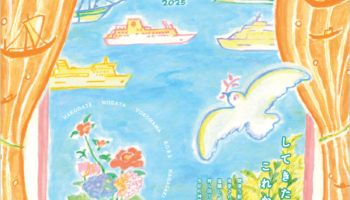 開港5都市景観まちづくり会議のシンボルマークは、5都市にちなんで5つの帆が風を受けて広がっている様子…
